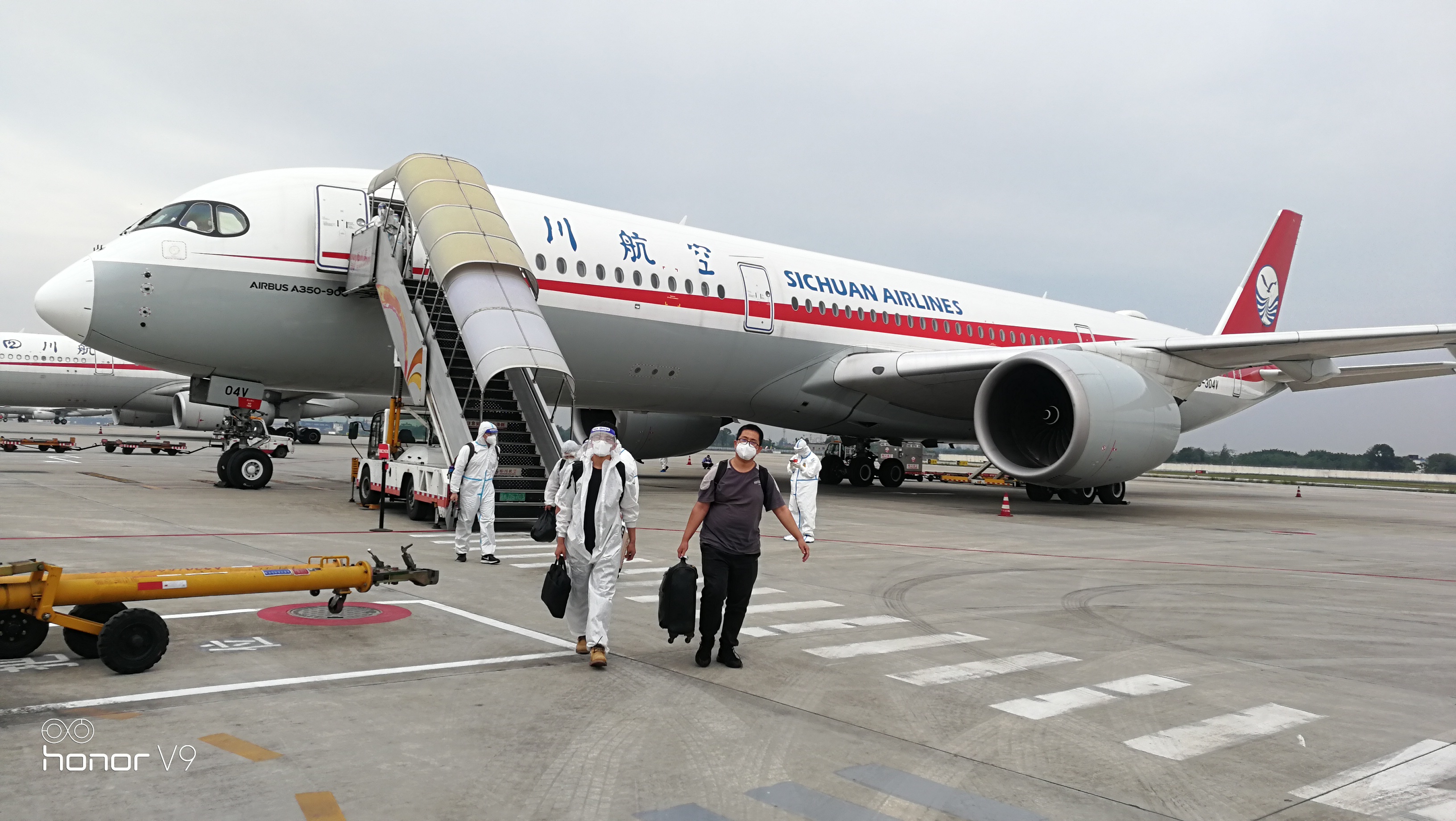 終于到了6月18日,晚上八點(diǎn)多,我們一行14人順利登上了航班。機(jī)艙內(nèi)所有人都穿著白色的防護(hù)服,戴著口罩和面罩。期間大家盡可能不吃喝不上廁所。歷經(jīng)10個(gè)小時(shí),飛機(jī)緩緩地降落在了雙流機(jī)場(chǎng)。那一瞬間的一景一物,無(wú)比親切。我們還將隔離14天,但這些不算什么,我們已身在祖國(guó),離家的越來(lái)越近了。7月4日,我終于回到了有“世界長(zhǎng)壽之都”美譽(yù)的南通。社區(qū)安排的專車早早地等候在那里,接我去繼續(xù)隔離。家,就在幾公里外,聽(tīng)著手機(jī)里家人的聲音,心中滿是溫馨。