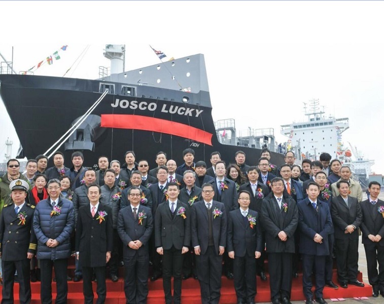 2018年3月8日,江蘇遠(yuǎn)洋運(yùn)輸有限公司通過融資租賃形式投資建造的三艘1900TEU集裝箱船中的首艘“JOSCO LUCKY”輪,在揚(yáng)子江船業(yè)集團(tuán)公司舉行了命名交付儀式。江蘇省港口集團(tuán)黨委副書記、副總經(jīng)理王樹華為新船命名交付致辭,江蘇省港口集團(tuán)規(guī)劃投資部朱從富部長為新船開啟香檳,江蘇遠(yuǎn)洋運(yùn)輸有限公司總經(jīng)理毛雪強(qiáng)為新船命名。日本海事協(xié)會(huì)副會(huì)長飯?zhí)餄櫼焕上壬?、日本船級社中國區(qū)總裁成澤平先生、江蘇揚(yáng)子江船業(yè)集團(tuán)公司副董事長王建生先生、總經(jīng)理任樂天先生、副總經(jīng)理宋書明先生、副總經(jīng)理兼新?lián)P子總經(jīng)理呂堅(jiān)煒先生、副總經(jīng)理張濤先生等參加了命名交船儀式。