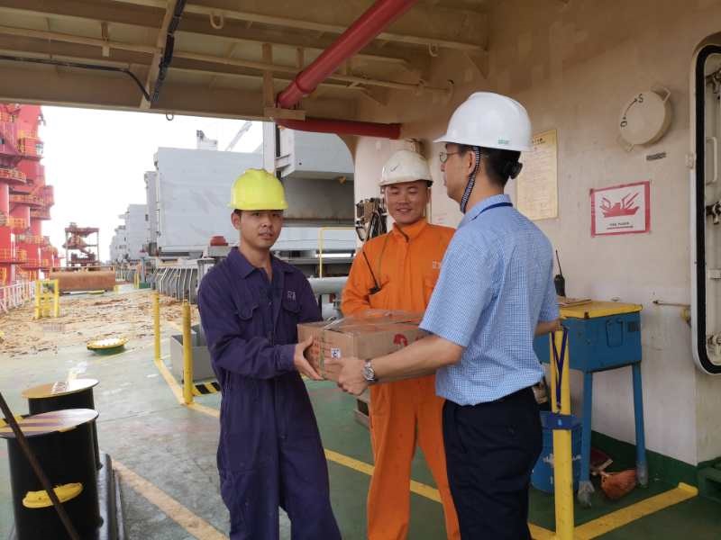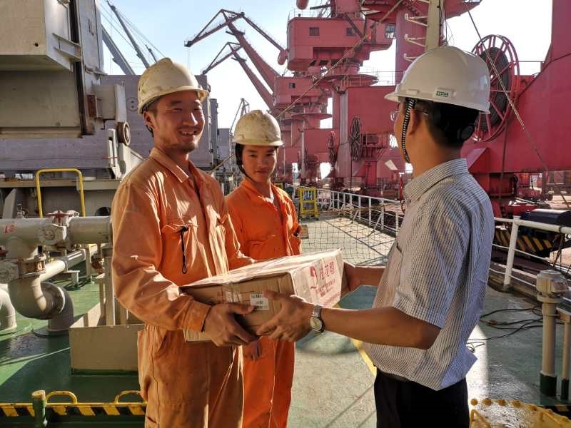 8月16日和17日,公司紀(jì)委書記戴偉率安監(jiān)部、船管部赴靠泊在嵐山和連云港的“江遠(yuǎn)太倉(cāng)”和“江遠(yuǎn)惠州”輪,代表公司慰問(wèn)奮戰(zhàn)在盛夏酷暑一線船員兄弟們,并為他們送上慰問(wèn)金和一些清涼飲料及防暑降溫食品。