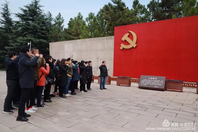 在南湖革命紀(jì)念館宣誓墻前,黨員們?cè)邗r紅的黨旗前莊嚴(yán)鄭重地舉起右手,重溫了入黨誓詞:“我志愿加入中國(guó)共產(chǎn)黨······”